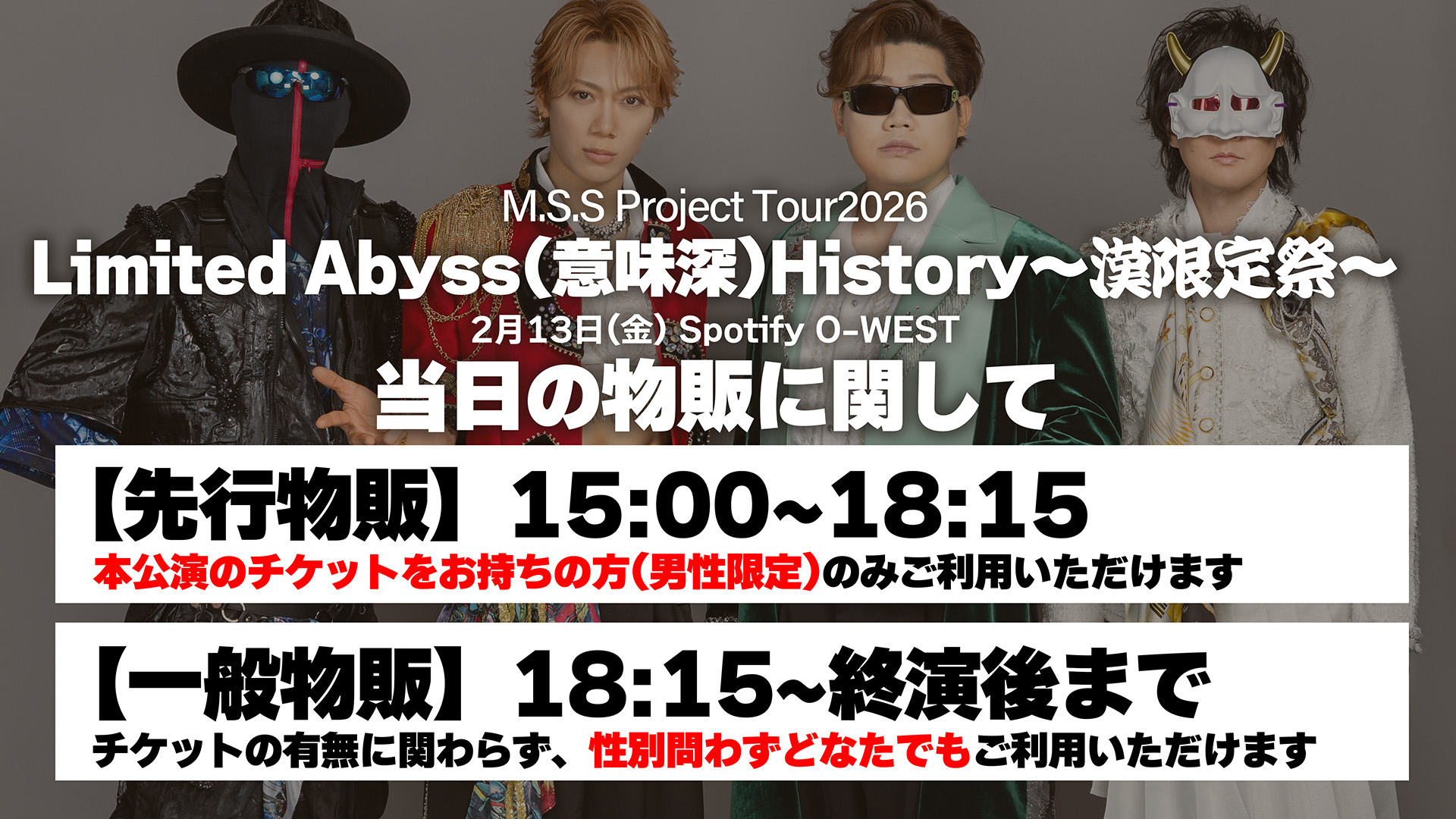 2月13日(金)M.S.S Project Tour 2026 Limited Abyss(意味深) History~漢限定祭~にご来場の方へ